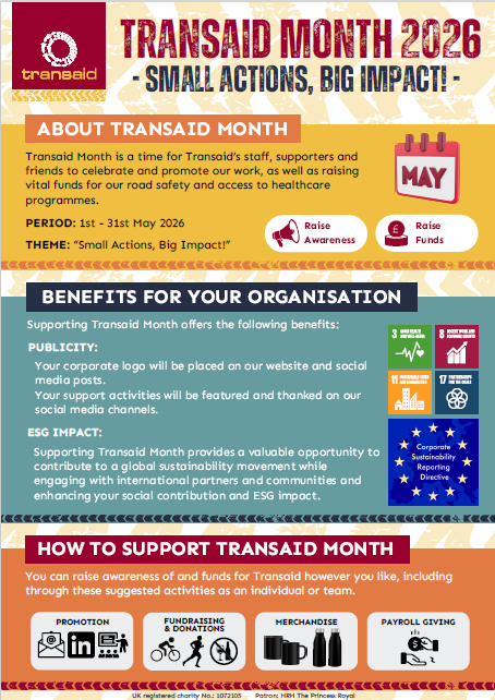 Transaid Month is a time for Transaid’s staff, supporters and friends to celebrate and promote our work, as well as raising vital funds for our road safety and access to healthcare programmes.